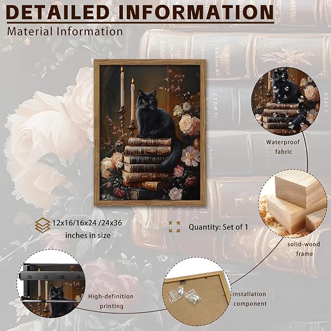 - 【Perfect Gift for Art Lovers】An ideal gift for Dark Academia enthusiasts, cat lovers, book collectors, or Gothic decor fans. Suitable for birthdays, housewarmings, holidays, or special occasions, this piece is a memorable and elegant addition to any home.