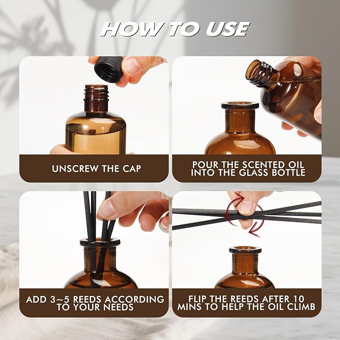- EASY SCENT CONTROL: Adjust the intensity of the fragrance by adding or removing reed sticks to match your preference. It takes 1-2 days for the reeds to soak in oil thoroughly and release the full fragrance. When the scent weakens, simply flip the sticks upside down or replace them with new ones to reactivate it