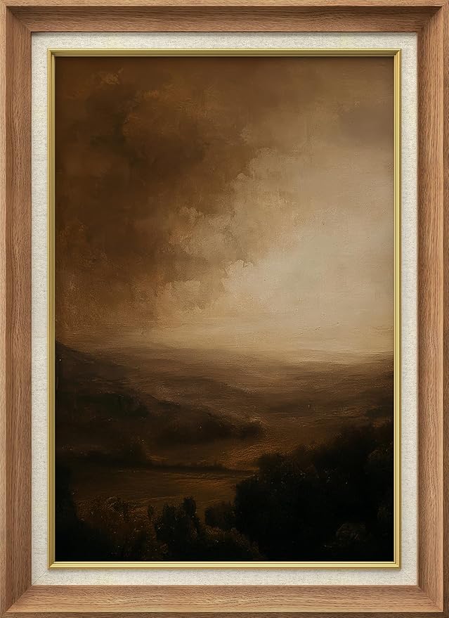 SIGNFORD Premium Framed Wall Art Golden Sepia Misty Landscape Illustrations Fine Art Farmhouse/Country Decorative Rustic Vintage Antique Classic for Bedroom - 26"x36" Natural