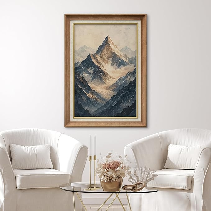 SIGNFORD Premium Framed Wall Art Majestic Snow-Capped Mountain Peak Scenic Landscape Illustrations Fine Art Farmhouse/Country Decorative Rustic Vintage Antique Classic for Bedroom - 26"x36" Natural