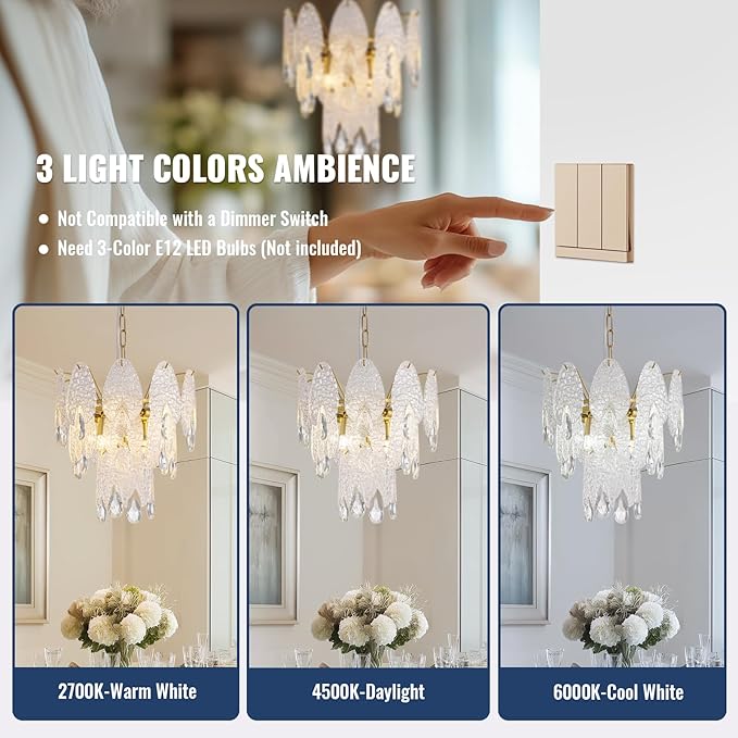 - β¨ Modern 3-Tier Crystal Glass Chandelier - This Tinkoso 13" chandelier showcases a stunning 3-tier cascading design,featuring a premium finish that enhances its luxurious appearance,making it an ideal centerpiece for dining rooms, living rooms, and bedrooms.
