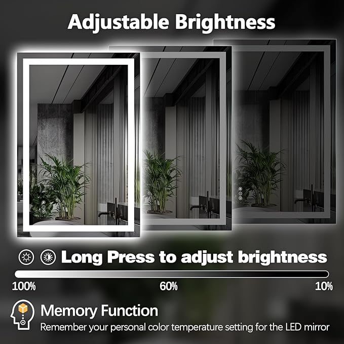 - Stepless Dimming & 3 Color Temperatures & Memory Function: The Niccy lighted mirror features stepless adjustment for brightness. And you can just short-press to cycle through three color temperatures: warm (3000K), natural (4000K), and white light (6000K). The memory function restores your last used settings for a consistently seamless experience.