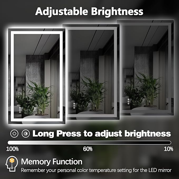 - Defogger Function & Waterproof: Our bathroom mirror is equipped with a defogging system which keeps the mirror clear even in a steamy bathroom. And the Niccy LED mirror has an IP65 rating, so it is safe to use in the damp environment of your bathroom.