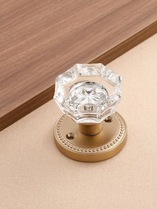 1 Pack Champagne Bronze Door Knobs Crystal Door Knob Passage Door Knobs Glass Interior Door Knob for Hall and Closet Zinc Alloy