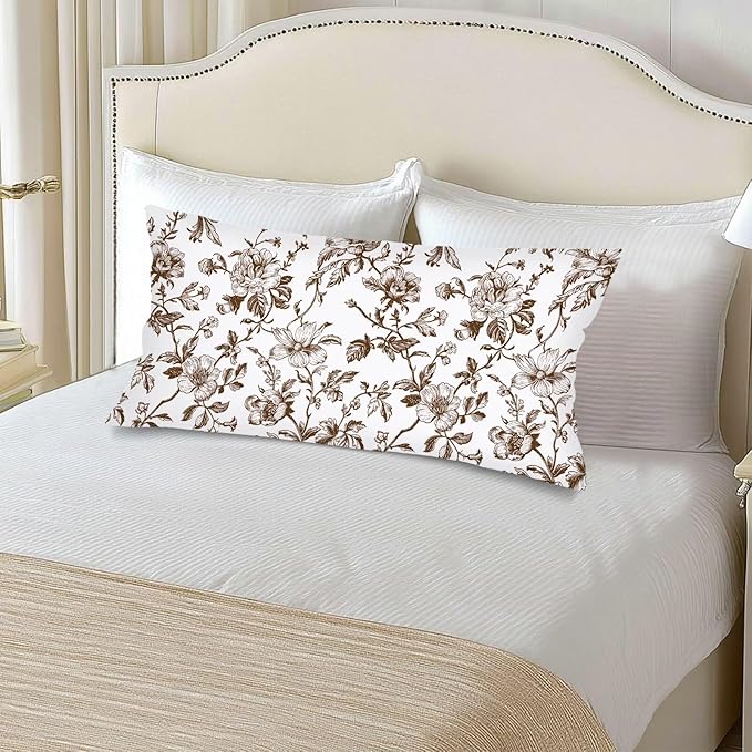- Chinoiserie Throw Pillow for Bed:decorative Brown pillow covers for couch is made of cozy microfiber polyester fabric-bed pillow covers is breathable, smooth. Brown and white oblong pillow covers make you feel more comfortable when you are sleeping on your bed.