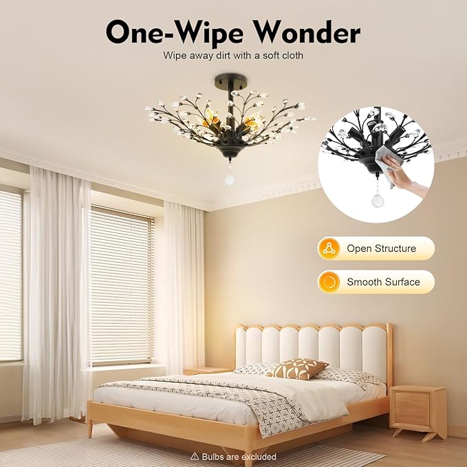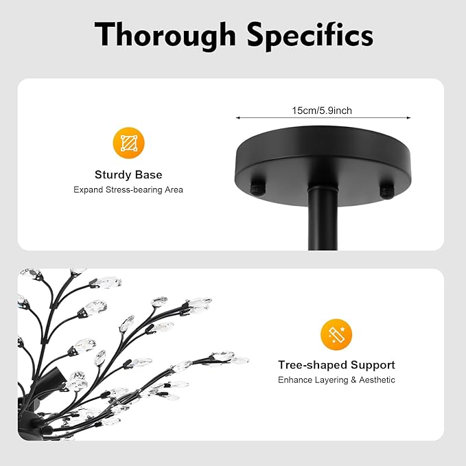 - Stable Safe Base:5.9-inch diameter solid base expands ceiling contact area,boosting load-bearing capacity for safe daily use.Designed for semi-flush ceiling mounting,this crystal pendant light offers stable,secure performance