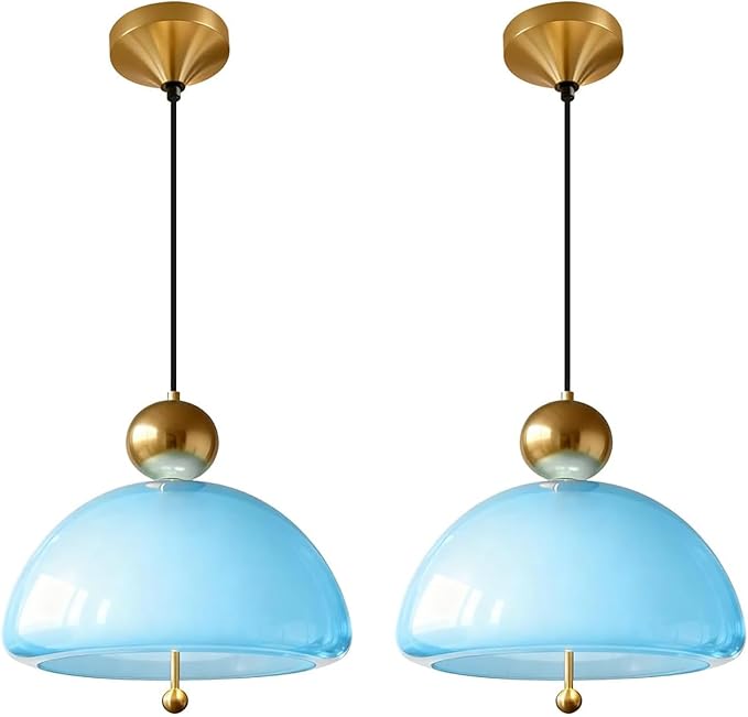 Farmhouse Large Chandelier Globe Vintage Pendant Light with Blue Glass 2-Pack Modern Hanging Lamp Fixture 1-Light for Kitchen Island, Dining Room, Hallway, Bedroom, E26 Base