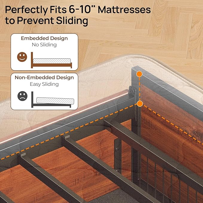 - Sturdy, Noise-Free Design: Crafted for durability, this bed frame features 13 reinforced steel slats and 9 support legs, holding up to 800 lbs without a box spring. A soft sponge on the middle beam prevents squeaks and metal friction, keeping your sleep quiet and peaceful. The all-metal design makes the bed stable and secure for a good night's rest